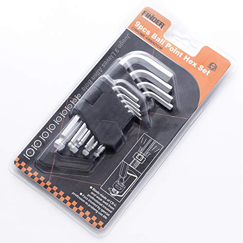 FINDER XJ193129P Allen Wrench Set, Hex Key Set with Arm Ball End, Metric, Set of 9 pieces, Standard