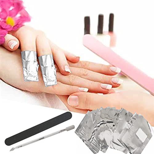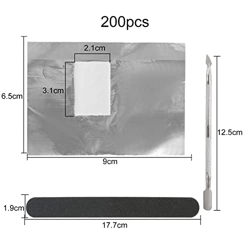 FINDIR 200pcs Remover Foil Wraps Fogli Di Alluminio per Rimuovere Lo Smalto Rimuovere Smalto Gel per Unghie Remover Foil Wraps con 1pcs Lima per Unghie e 1pcs Push in Acciaio