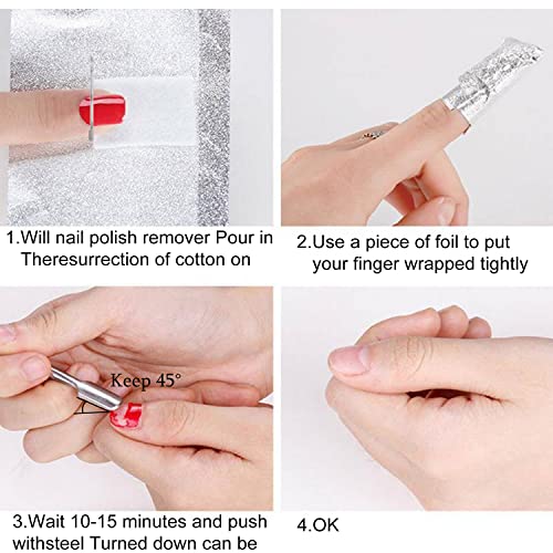 Facile da usare: basta mettere un po' di acetone sul pezzo di cotone centrale e avvolgerlo sull'unghia, avvolgere il dito con il pezzo di alluminio, dopo dieci minuti, lo smalto cadrà automaticamente, quindi utilizzare lo spingi cuticole per rimuovere facilmente il cuticola.