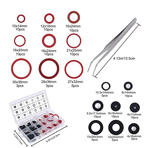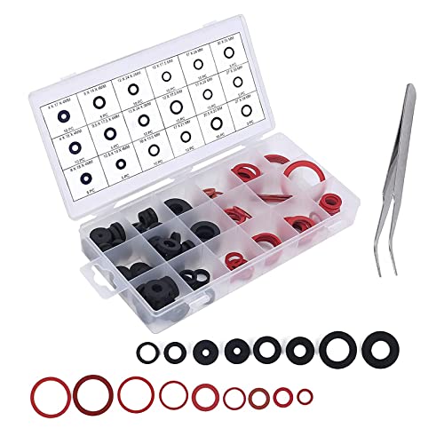 Ampia varietà: Guarnizione gomma contiene 141 pezzi e 18 dimensioni di O-ring. Disponibile nei colori nero e rosso, è adatto a tutte le occasioni e può soddisfare le vostre esigenze quotidiane. Le pinzette sono ottime per afferrare le rondelle.