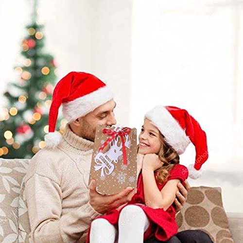 Imballaggio del prodotto: i sacchetti regalo di carta contengono 24 sacchetti regalo di Natale, 6 etichette vuote bianche con motivo natalizio e nastri rossi di circa 72 metri.