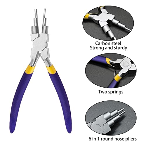 FINDIR 6 in 1 Pinze a Becchi Tondi in Acciaio al Carbonio Pinze per Gioielli fai da te Pinza per Fare con Impugnatura Comoda Antiscivolo per Creazione e riparazione di gioielli
