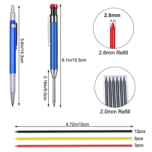 Set di righelli triangolari: il set include un righello triangolare metrico da 7 pollici, 1 matita meccanica da 2,0 mm (12 anime di piombo nero da 2,0 mm) e 1 pennarello per la lavorazione del legno da 2,8 mm (6 anime nere + 3 anime gialle e 3 anime rosse).