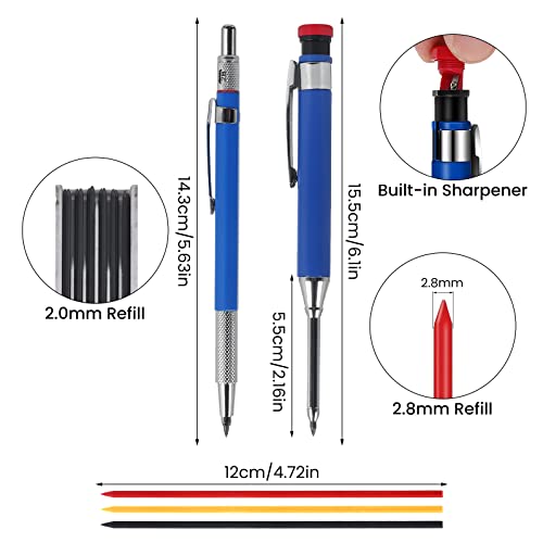 Set di righelli triangolari: il set include un righello triangolare metrico da 7 pollici, 1 matita portamine da 2,0 mm (6 anime di piombo nero da 2,0 mm) e 1 pennarello per legno da 2,8 mm (6 anime nere + 3 anime gialle e 3 anime rosse) .