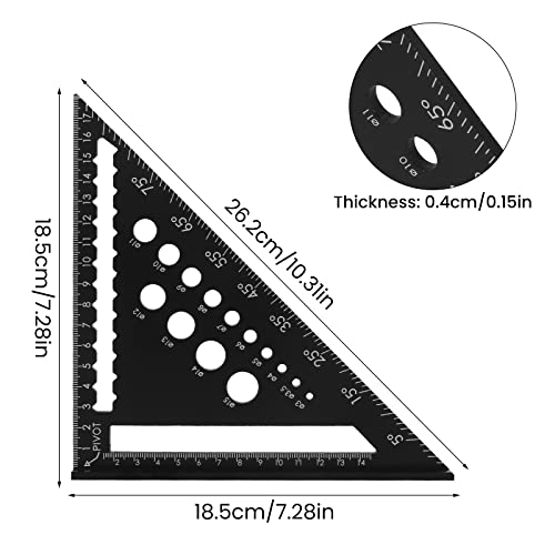 FINDIR Squadra da Falegname Professionale 18 cm Righello Triangolare in Lega di Alluminio Carpentiere Attrezzi con Matita da Falegname e Strumento di Marcatura per Falegname Ingegnere