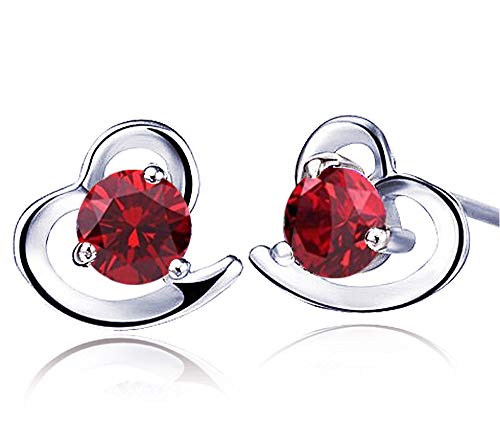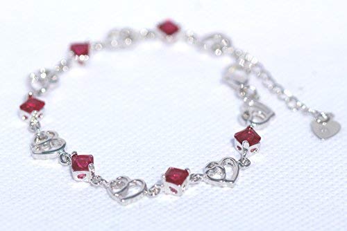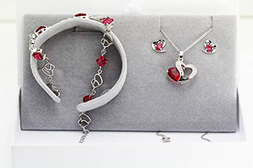Findout, set bracciale + orecchini + collana con pendente a cuore in cristallo e ametista rossa, rosa, blu, bianca, per donne e ragazze. e Argento, colore: Red Crystal, cod. f497