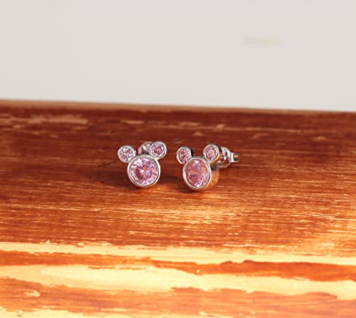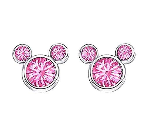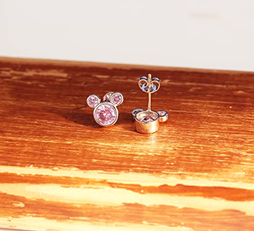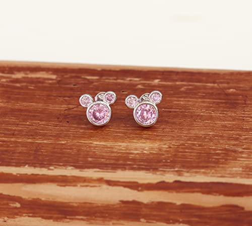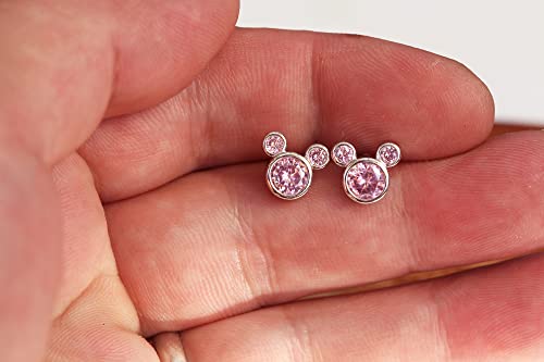 Findout - Orecchini da donna in argento Sterling a forma di topolino, con zirconi rosa, per ragazze e bambine;