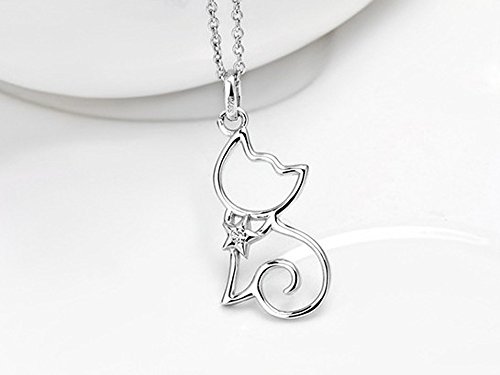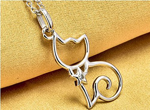 Findout signore argento zirconi gatto ciondolo collana .per donne delle ragazze dei bambini. (f1599)