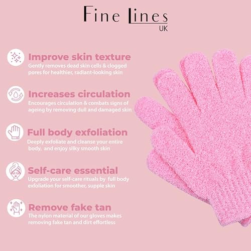 Fine Lines - Guanto Esfoliante Corpo, Pacco da 3 | Guanto Scrub Corpo Doccia, Rimuovi pelle morta | Guanti Esfolianti Corpo Doccia con anelli per essere appesi | Design protetto Fine Lines