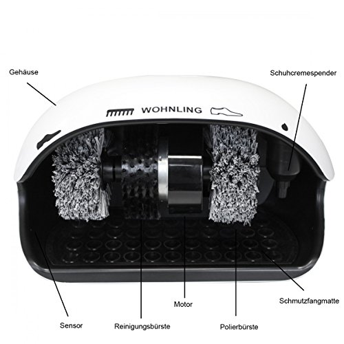 FineBuy macchina pulisci scarpe con sensore automatico Spegnimento automatico elettrico macchina pulizia scarpe con 3 spazzole alta comfort sciuscià lucidatrice per scarpe con tappetino in gomma zeitabschaltung Timer 15 sec