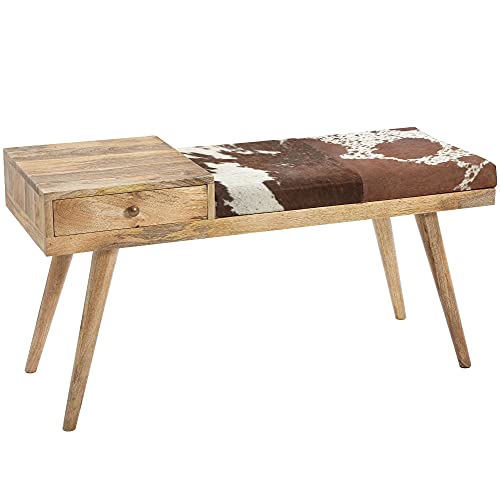 FineBuy Panchina da Interno 100x52x38 cm Vera Pelliccia/Legno Massiccio Panchetta | Panca da Corridoio Contenitore | Panche Imbottita Rustica