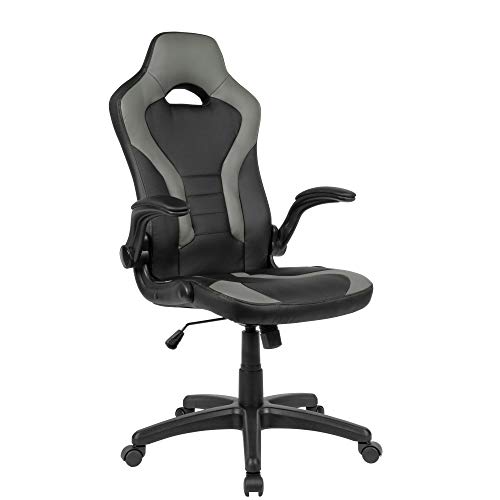 FineBuy Sedia Ufficio Grigio e Nero Ecopelle Poltrona Scrivania Ergonomica | Design Sedia con Ruote & Braccioli | Sedia Girevole Imbottita Studio