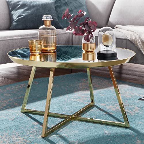 FineBuy Tavolino Salotto Vetro Specchiato e Metallo 76x76x41 cm Rotondo | Tavolo da Soggiorno Tavolinetto Moderno | Tavolino da caffè