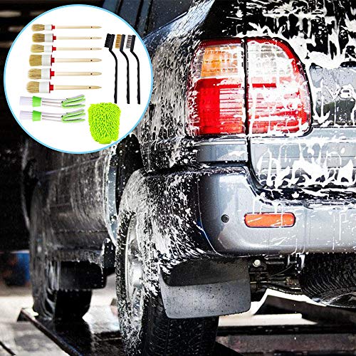 FineGood 12 PCS Spazzola per Pulizia Auto, 6 Spazzola per Pulizia Ruote Kit Spazzola per Pulizia Auto 3 Spazzola Metallica 2 Spazzola per sfiato Automatico 1 Guanto per autolavaggio