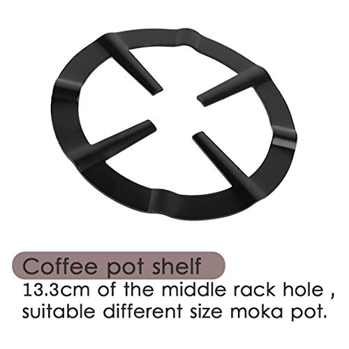 Diametro: 13,3 cm (circa). Il riduttore ad anello di gas si trova sul telaio metallico sopra i bruciatori a gas, meno possibilità di fuoriuscite pericolose. Metallo di alta qualità: porta caffettiera in ghisa, resistente e di lunga durata, sostiene il fondo della moka e aiuta a riscaldarlo. Scaffale per caffettiera: la moka può essere posizionata su di essa in modo uniforme e corretto, può divertirsi a preparare la moka a casa.È il partner ideale della moka. In forma: è portatile e affidabil