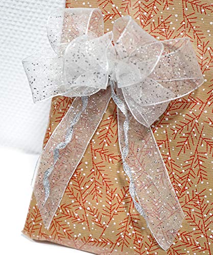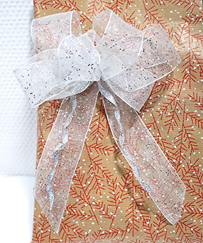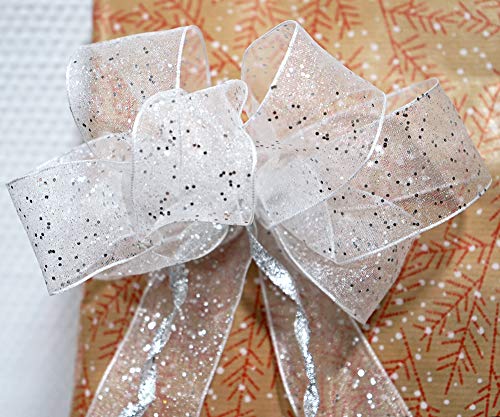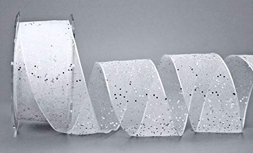 Finemark argento bianco glitter Nastro Decorativo, 20m x 40mm (rotolo) glitter tessuto trasparente, filo di organza bordatura, Premium elegante di compleanno di Natale del nastro