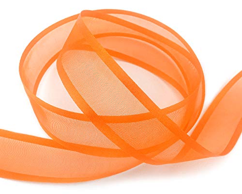 Finemark - Nastro decorativo semitrasparente in chiffon con bordo in raso satinato, brillante, senza fili, organza, 25 m x 25 mm, 34, colore arancione