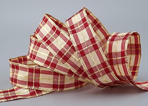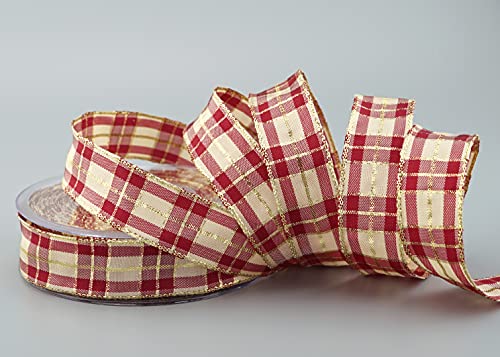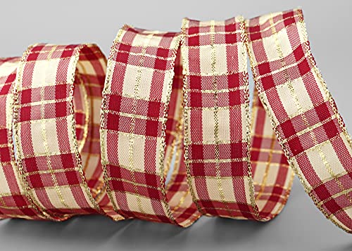 Finemark - Nastro natalizio a quadri, 20 m x 25 mm, colore: Bordeaux Crema Gold (124) con lurex per bordi in filo di lurex