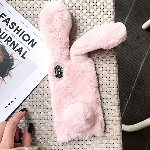 Finemoco Cover per Huawei P30 Lite Custodia Coniglio Orecchio Peluche Morbida Cover Silicone Protettiva Cover Rosa Carina Peloso Caso Antiurto Flessibile Gomma TPU Bumper Case con Brillante Strass