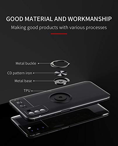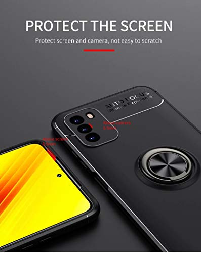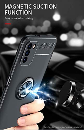 FINEONE Ultra Sottile Morbida TPU Cover per Telefono Xiaomi Redmi 9T AntiGraffio Antiurto Case, 360 Girevole Regolabile Ring Cellulare Custodia,Nero