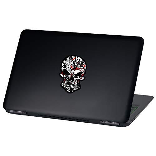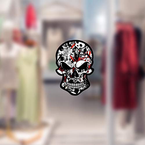 Finest Folia 2 adesivi divertenti con teschio, 7,2 x 11 cm, autoadesivi per auto, auto, moto, bus, roulotte R121 (n. 5, teschio nero, rosso)
