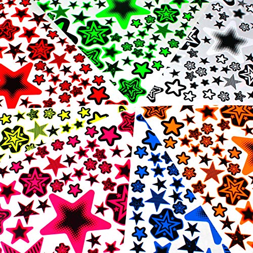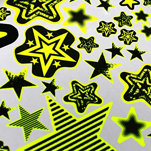 Finest Folia - Set di adesivi a forma di stella, formato DIN A4, autoadesivi, al neon, per fai da te, scrapbooking, decorazione, regalo per bambini (giallo neon, stelle V2)