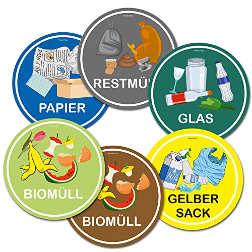 Finest-Folia, set di 6 adesivi per la raccolta differenziata, resistenti a graffi e intemperie