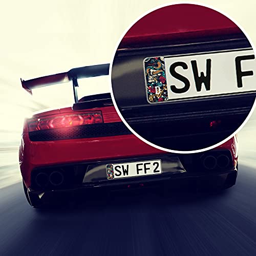 Finest Folia 2 x adesivi per targa auto su misura per EU campo di design adesivo per tuning targa auto, resistenti ai lavaggi, R166 (08 Skulls and Snakes, DE)