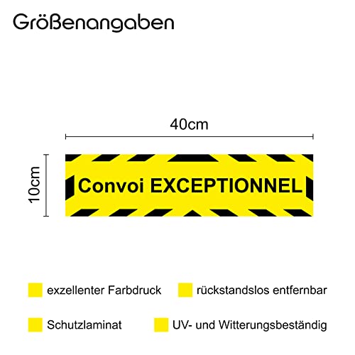 Finest Folia Nota adesiva, 40 x 10 cm, segnale di avvertimento, autoadesivo, impermeabile, in vinile, per auto, camion, RX043 (01 Convoi Exceptionnel)
