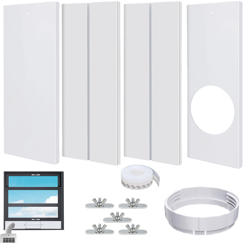 Kit finestra condizionatore d'aria portatile Kit di sfiato finestra scorrevole regolabile per la maggior parte delle finestre scorrevoli verticali e orizzontali Specifica: Nome: deflettore in 4 pezzi con set tenditoreColore: biancoMateriale;