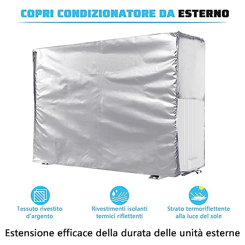 Finetoknow Copri condizionatore da esterno, copri motore condizionatore, copertura condizionatore esterno, protezione solare, impermeabile, per climatizzatori da esterno Argento