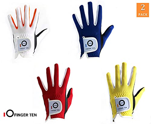 FINGER TEN Confezione di 2 Pezzi di Guanti da golf, per bambini,Gioventù Ragazzi, colori disponibili bianco/blu/rosso/giallo (Rosso, M(Age 5-6) Destra)