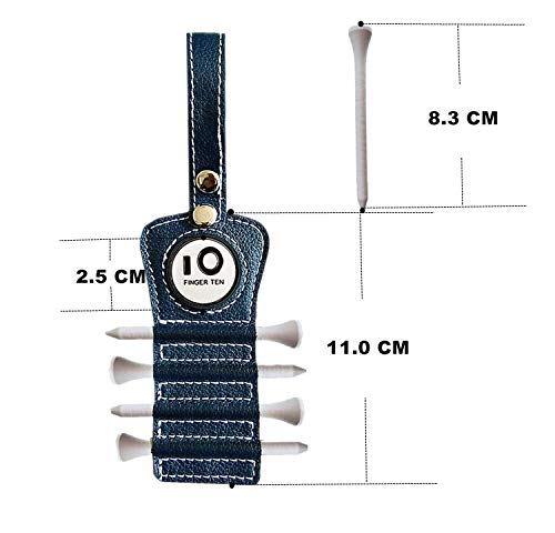 FINGER TEN Porta Tee da Golf e con Libero e 4 Pezzi in Legno Tees Pack Gancio, Regalo per Clip da Cintura,Organiser Tee Holder in Pelle Colore Nero Rosso Blu (Blu)