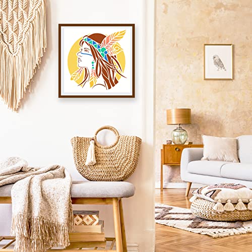 FINGERINSPIRE Donne Native Americane Pittura Stencil 30x30cm Plastica Disegno Tribale Pittura Stencil Artigianato Indiano e Stencil Decorativi Stencil Riutilizzabili per Dipingere Decorazione