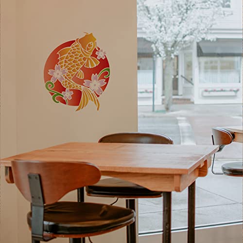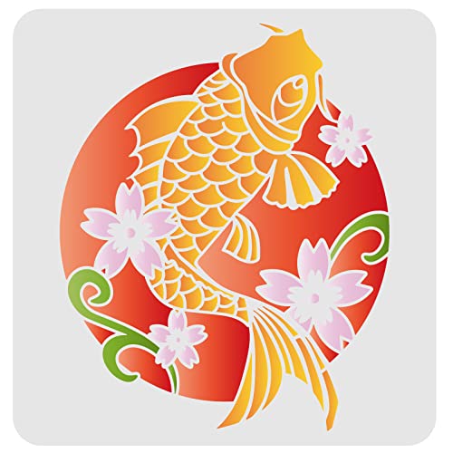 FINGERINSPIRE Koi Fish Stencil 30x30cm Fancy Carp Drawing Painting Stencil Koi Flower Leaf Pattern Stencil da Parete Lavabili riutilizzabili DIY per dipingere su Legno, Pavimento, Parete e Piastrelle