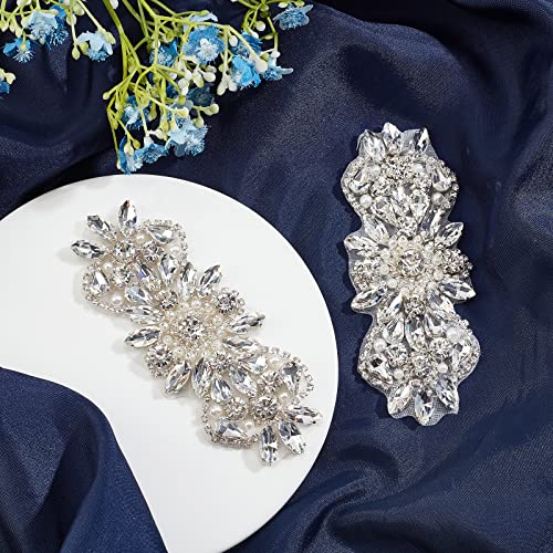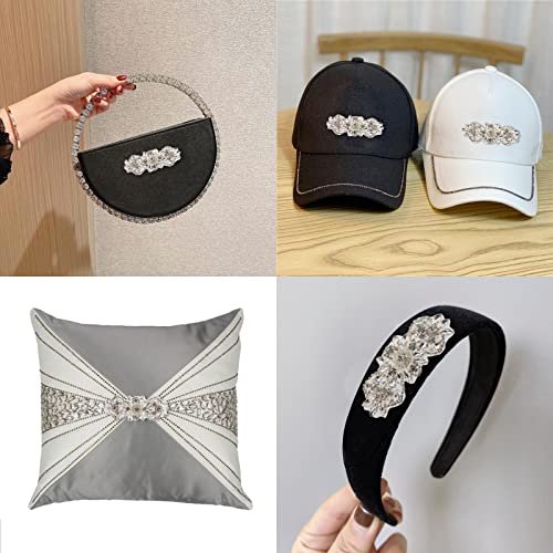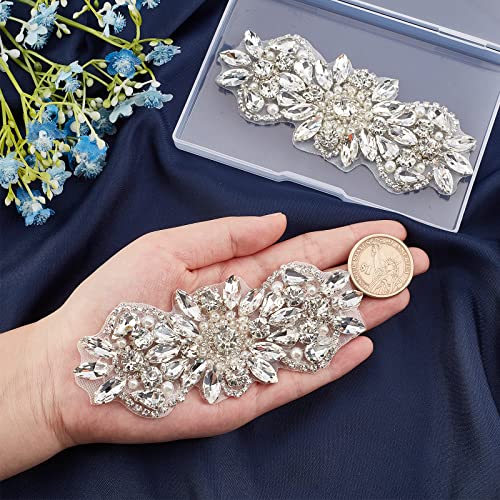 FINGERINSPIRE 2 Pezzi Strass Applique per Abiti da Stiro/Cucire Strass Patch con Perline a Forma di Fiore Hotfix Applique da Cucito per Abiti da Sposa, Copricapo, Scarpe da Cintura o Decorazione