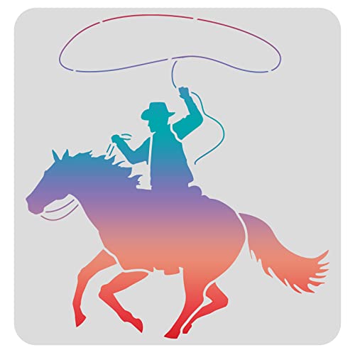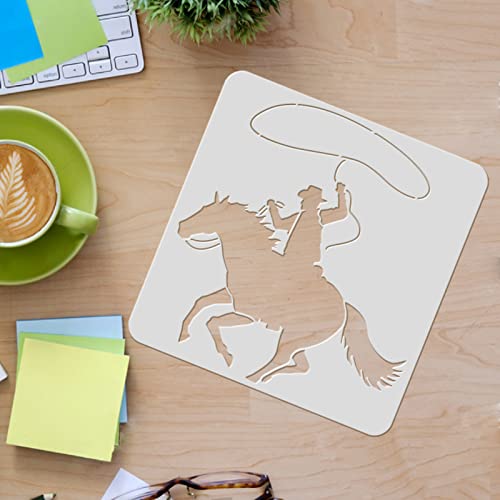 Stencil da cowboy Ridding Horse - Gli stencil in plastica sono costituiti da motivi da cowboy e cavallo, che aggiungono sorprese e felici alla tua vita. Dimensioni: circa 30 x 30 cm.