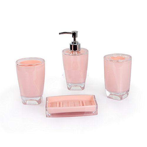 Fingey, set di 4 accessori da bagno in ceramica dal design moderno, con portasapone, portaspazzolino, dispenser di sapone e bicchiere per risciacquare Pink