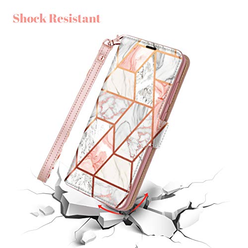 Fingic - Custodia a portafoglio per Samsung Galaxy A21S in marmo [TPU interno] [funzione cavalletto] [blocco RFID] [porta schede] [chiusura magnetica] in pelle PU per Samsung A21S, colore: Oro rosa