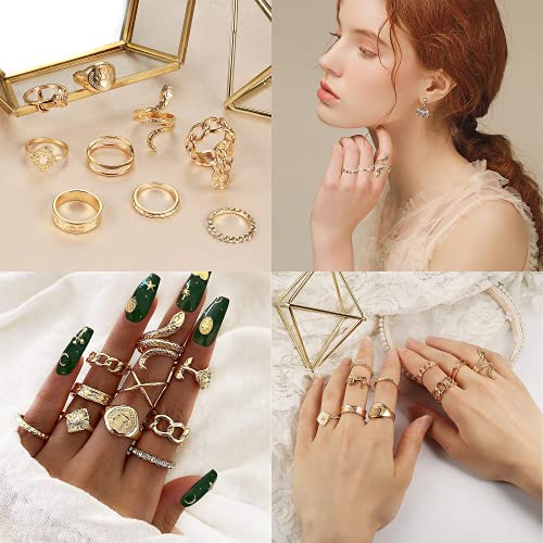 Finrezio 68Pz Set di Anelli per Nocche in Argento Dorato per Donna Anello Impilabile con Catena a Serpente Boho Retro Strass Spine Foglie Anelli Articolari Anelli Midi Luna Turchese Misura Mista