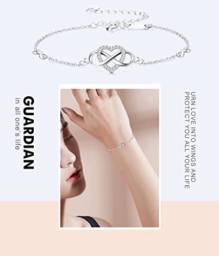 Finrezio Bracciale con Cuore Infinito in Argento Sterling 925 per Donna Bracciale con Ciondoli in Zirconi Regolabili per Gioielli per La Festa della Mamma per San Valentino