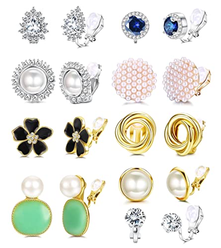 Finrezio 9 Paia Orecchini a Clip da Donna CZ Perle D'acqua Dolce Nodo di Torsione Non Forato Orecchini a Clip Set Orecchini a Clip di Fiori da Donna