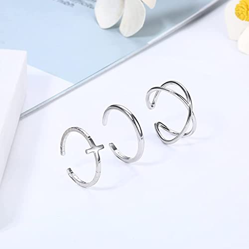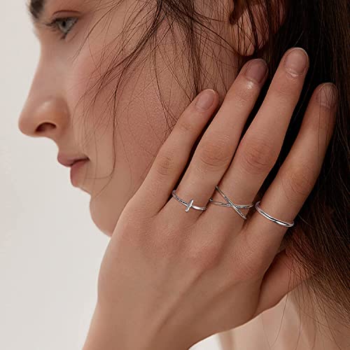 ✨SET DI ANELLI APERTI✨Un ordine otterrai 3 anelli aperti in argento sterling di diversi stili, stile minimalista, non passa mai di moda. L'anello aperto più convenzionale, l'anello di fila e l'unico anello a X. La fusione di semplicità e fashion design, accessorio perfetto adatto per feste e da indossare come gioielli quotidiani.