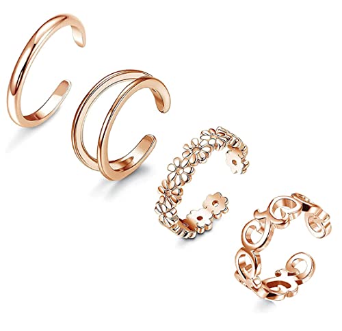 Finrezio 4 Pezzi Argento Anelli Aperti Set Toe Rings Regolabile per Donne Ragazze Fiore Celtico Semplice Finger Ring Impilabile Coda Anello Spiaggia Piede Gioielli