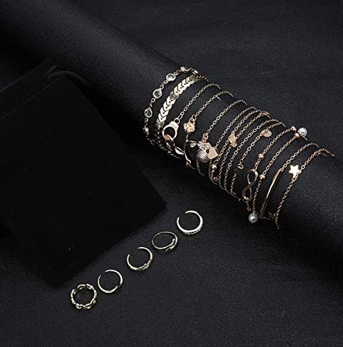 Finrezio 15 Pezzi Cavigliere Catene Bracciali Set Open Toe Ring Set per Donna Ragazze Bracciali Caviglia A Strati Cuore Stella Regolabile Spiaggia Cavigliera Gioielli Piede