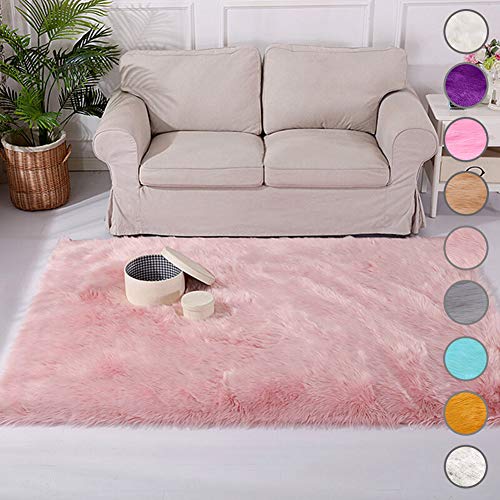 Finta Pelliccia di Agnello Tappeto Rosa Chiaro Faux Tappetto di Pelle 180x210cm, Morbido e Antiscivolo Lunga Pelliccia Morbida per Salotto, tavolino Salotto, Camera da Letto, Computer, Sedia
