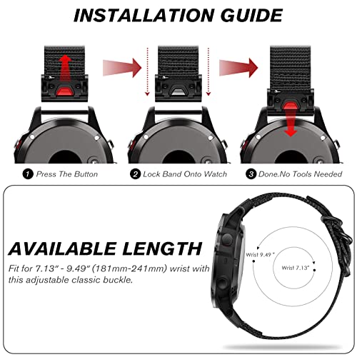 Questo cinturino in nylon intrecciato da 26 mm è progettato per l'orologio smart Garmin Fenix 3 / Fenix 3 HR / Fenix 5X / Fenix 5X Plus (controllare i dispositivi più compatibili nella descrizione dei prodotti). NON ADATTI Garmin Fenix 5, Fenix 5 Plus, Fenix 5S Sapphire.