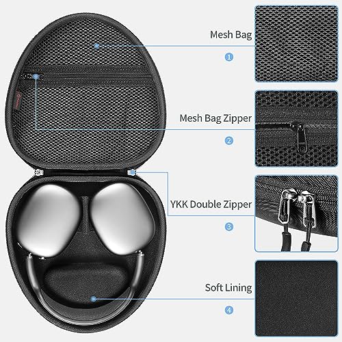【Più Organizzato】 Questa custodia AirPods Max include la tasca in rete perfetta con cerniera KYY per cavi, cavi, caricabatterie, cuscinetti auricolari, adattatori, carta d'identità o altri accessori.