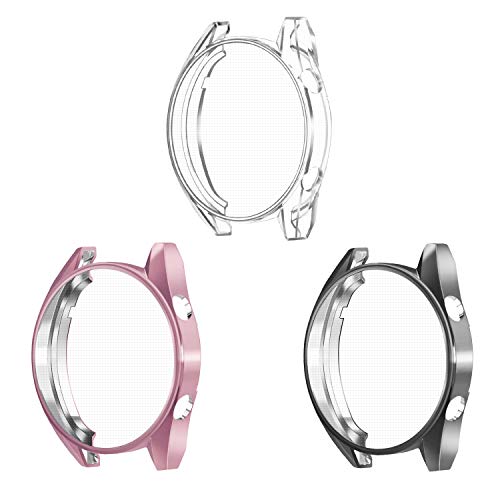 FINTIE Custodia Compatibile con Huawei Watch GT 2 46mm Smartwatch - [3 Pezzi] Ultra Sottile Proteggi Schermo Polycarbonat Full-Around Frame TPU Protettiva Bumper Case, Rosa,Trasparente,Grigio