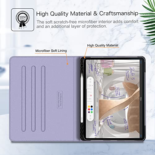 FINTIE Custodia Compatibile con iPad Pro 12.9" 6a/5a/4a/3a Generazione 2022/2021/2020/2018 con Pencil Holder, Multi-angli Slim Cover Case con Pocket e Auto Svegliati/Sonno, Lilla Marble